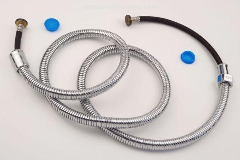 - Dây dẫn inox dài 120cm, lõi bố dù bền bỉ: Chống xoắn, chịu áp lực cao, không bị rò rỉ nước.
