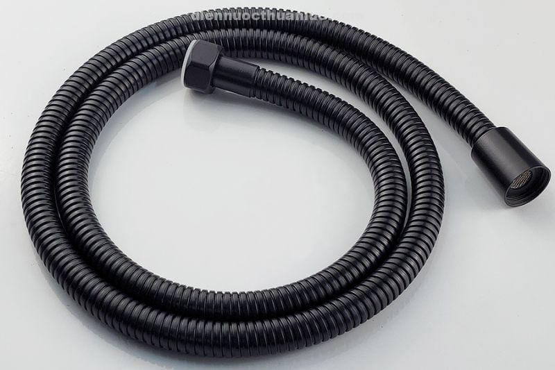 Bộ xịt đi kèm với dây xịt dài 120cm, có vỏ Inox mạ màu đen, bền bỉ và chịu được nhiệt độ cao. Ruột dây làm từ cao su EDPM có khả năng chịu áp suất cao và được gia cố bằng một lớp bố dù chắc chắn, đảm bảo không bị vỡ hay giãn nở trong quá trình sử dụng.