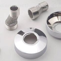 Chân ốc kết nối được làm từ đồng thau, kết hợp với ốc gông bằng Inox. Thiết kế này giúp củ sen không bị gãy khi lắp đặt và không bị rỉ teng đồng lem luốc lên tường, giữ cho phòng tắm luôn sạch sẽ.