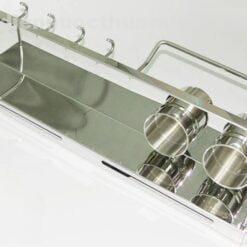 - Thiết kế tiện dụng: Bao gồm 2 ống đựng đũa, muỗng, giá để gia vị, bộ cài dao và thanh treo khăn.