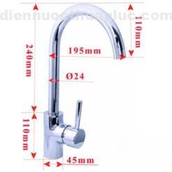 Ống vòi có chiều cao lên tới 240mm và đường kính phi 24mm, giúp nước chảy mạnh mẽ và ổn định. Độ cao này giúp vòi đạt được dòng chảy mạnh và phù hợp cho nhiều mục đích sử dụng khác nhau trong bếp.